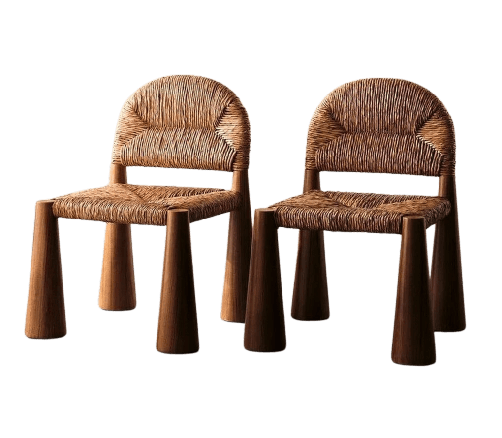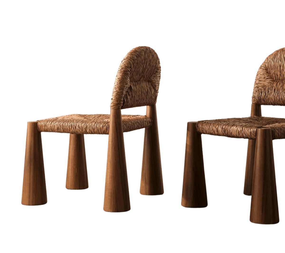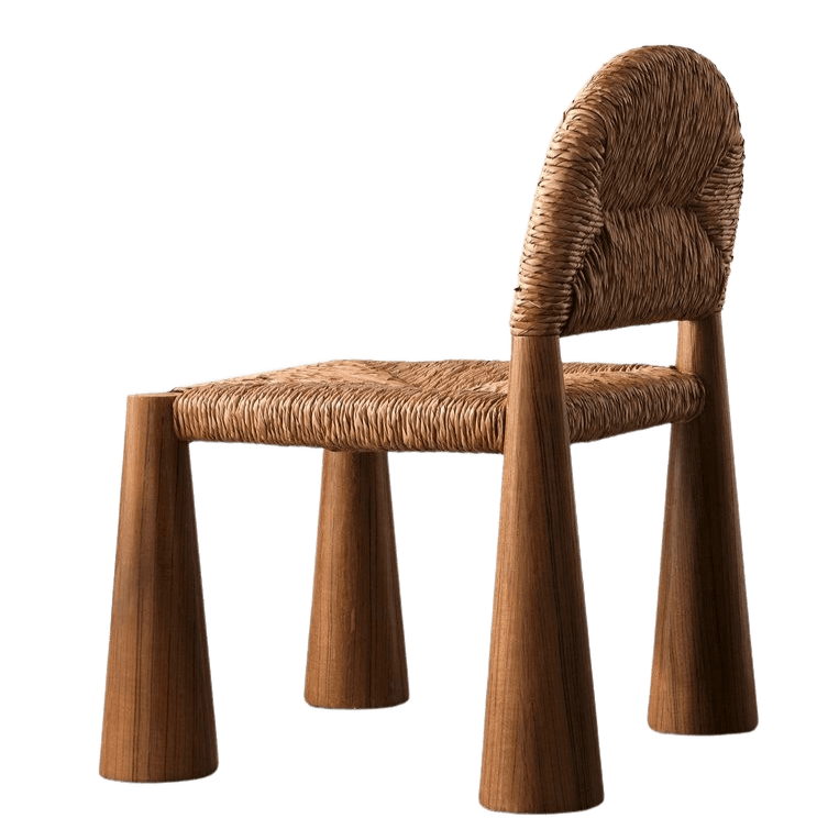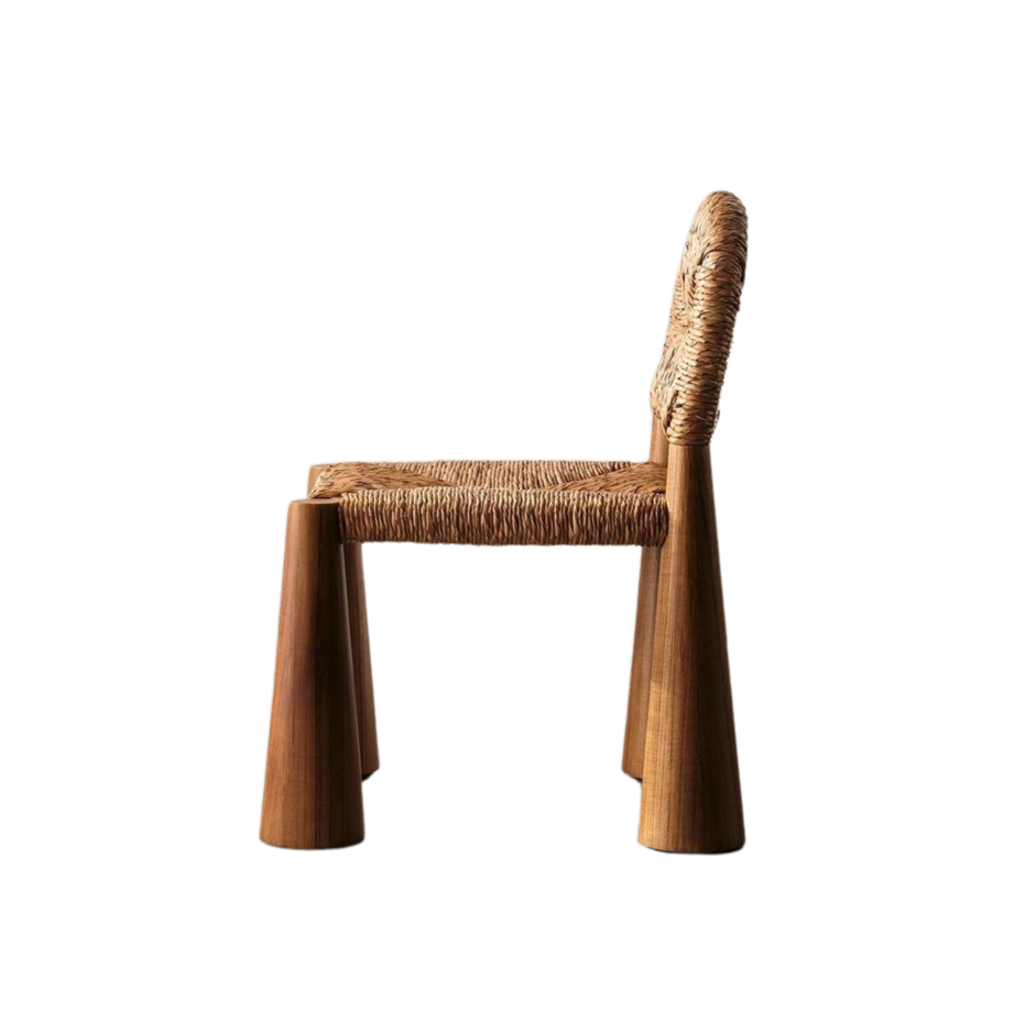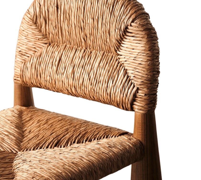 Doğallığın zarafetle buluştuğu bu tasarım, her detayı el işçiliğiyle şekillendirilerek zanaatkâr dokunuşlarla modern çizgilerle harmanlanıyor. Gövdesinde kullanılan masif ahşap, doğadan ilham alan sıcak bir doku sunarken; sırt ve oturma yüzeyindeki geleneksel örgü tekniği, her sandalyeyi benzersiz bir sanat eserine dönüştürüyor.